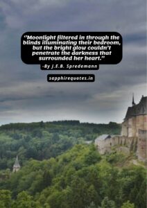 11) ”Moonlight filtered in through the blinds illuminating their bedroom, but the bright glow couldn’t penetrate the darkness that surrounded her heart.”