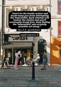 05) ”Don’t let the bonds of fear and doubt keep you from attempting the impossible. Each attempt will loosen the chains and you’ll eventually break free, thus finding the ‘impossible’ was actually possible all along.”