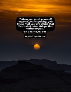 48)”When you push yourself beyond your capacity, you know that you are doing it at the cost of other things that matter to you.”