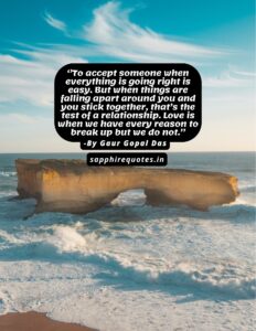 10) ”To accept someone when everything is going right is easy. But when things are falling apart around you and you stick together, that’s the test of a relationship. Love is when we have every reason to break up but we do not.”