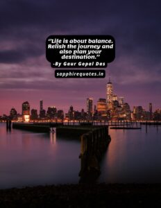 23) ”Life is about balance. Relish the journey and also plan your destination.”