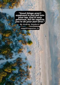 57) ”Good things aren’t supposed to just fall into your lap. God is very generous, but He expects you to do your part first.”
