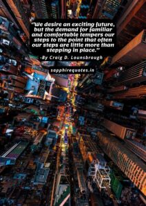 22)  ”We desire an exciting future, but the demand for familiar and comfortable tempers our steps to the point that often our steps are little more than stepping in place.”