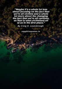 17)  ”Maybe it’s a whole lot less about focusing on the fact that we’re all victims and a whole lot more about the changing the fact that we’re all careless, as that is what victimized all of us in the first place.”