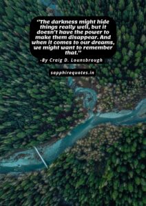 32)  ”The darkness might hide things really well, but it doesn’t have the power to make them disappear. And when it comes to our dreams, we might want to remember that.”