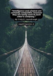 38)  ”Intelligence and wisdom are certainly compatible, however they are rarely seen in each other’s company.”