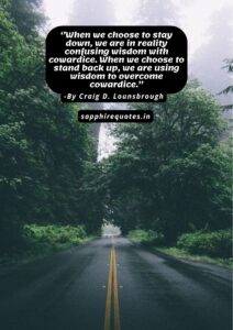 41)  ”When we choose to stay down, we are in reality confusing wisdom with cowardice. When we choose to stand back up, we are using wisdom to overcome cowardice.”