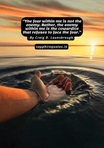 49)  ”The fear within me is not the enemy. Rather, the enemy within me is the cowardice that refuses to face the fear.”
