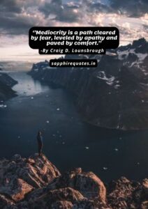 58)  ”Mediocrity is a path cleared by fear, leveled by apathy and paved by comfort.”