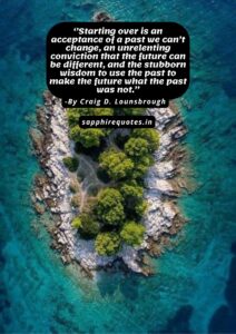06)  ”Starting over is an acceptance of a past we can’t change, an unrelenting conviction that the future can be different, and the stubborn wisdom to use the past to make the future what the past was not.”