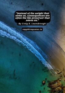 80)  ”Instead of the weight that sinks us, consequences are often the life preserver that saves us.”