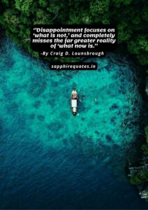 83)  ”Disappointment focuses on ‘what is not,’ and completely misses the far greater reality of ‘what now is.”