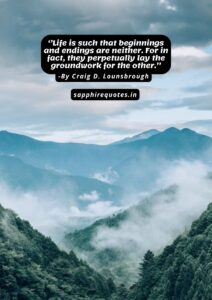 20)  ”Life is such that beginnings and endings are neither. For in fact, they perpetually lay the groundwork for the other.”