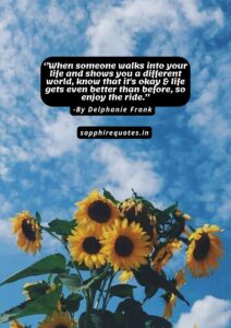 20)  ”When someone walks into your life and shows you a different world, know that it’s okay & life gets even better than before, so enjoy the ride.”  -Delphanie Frank