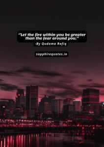 21)  ”Let the fire within you be greater than the fear around you.”  -Qudama Rafiq