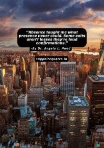 33)  ”Absence taught me what presence never could. Some exits aren’t losses they’re loud confirmations.”  -Dr. Angela L. Hood