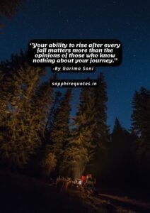 41)  ”Your ability to rise after every fall matters more than the opinions of those who know nothing about your journey.”  -Garima Soni