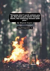 42)  ”Dreams don’t work unless you do, but once you move toward them, the universe moves with you.”  -Mayank Gupta