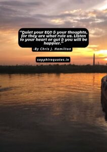 48)  ”Quiet your EGO & your thoughts, for they are what rule us. Listen to your heart or gut & you will be happier.”  -Chris J. Hamilton