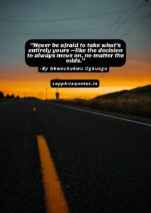50)  ”Never be afraid to take what’s entirely yours —like the decision to always move on, no matter the odds.”  – Nkwachukwu Ogbuagu