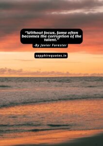 65)  ”Without focus, fame often becomes the corruption of the talent.”  -Javier Forester