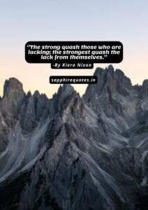 67)  ”The strong quash those who are lacking; the strongest quash the lack from themselves.”  -Kiera Nixon