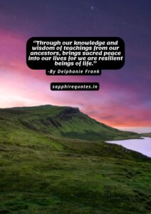 68)  ”Through our knowledge and wisdom of teachings from our ancestors, brings sacred peace into our lives for we are resilient beings of life.”  – Delphanie Frank