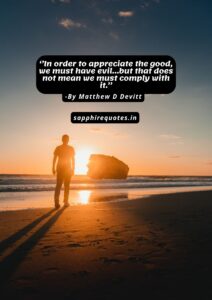 73)  ”In order to appreciate the good, we must have evil…but that does not mean we must comply with it.”  -Matthew D Devitt