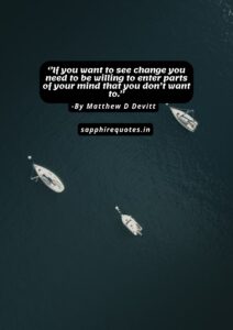 74)  ”If you want to see change you need to be willing to enter parts of your mind that you don’t want to.”  -Matthew D Devitt