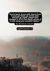 77)  ”Work hard. If you fail, learn from it and get back up. If the plan doesn’t go right, adapt and change it. If it’s too hard…good, if it was easy you wouldn’t grow.”  -Matthew D Devitt