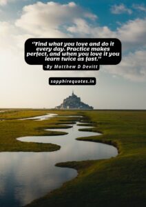 78)  ”Find what you love and do it every day. Practice makes perfect, and when you love it you learn twice as fast.”  – Matthew D Devitt