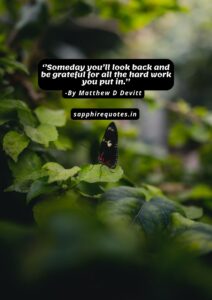 79)  ”Someday you’ll look back and be grateful for all the hard work you put in.”  -Matthew D Devitt
