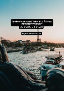 81)  ”Some win some lose. But it’s not because of luck.”  -Matthew D Devitt