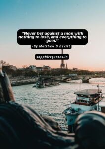 82)  ”Never bet against a man with nothing to lose, and everything to gain.”  -Matthew D Devitt