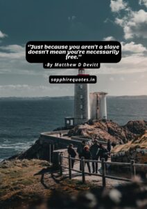 84)  ”Just because you aren’t a slave doesn’t mean you’re necessarily free.”  -Matthew D Devitt