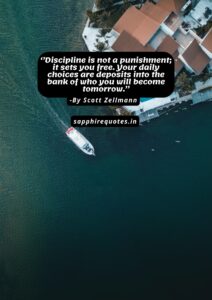 88)  ”Discipline is not a punishment; it sets you free. Your daily choices are deposits into the bank of who you will become tomorrow.”   Scott Zellmann