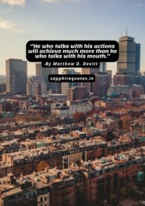 91)  ”He who talks with his actions will achieve much more than he who talks with his mouth.”  -Matthew D. Devitt
