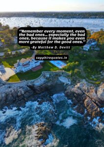 93)  ”Remember every moment, even the bad ones… especially the bad ones, because it makes you even more grateful for the good ones.”  -Matthew D. Devitt