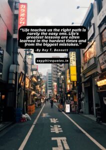 100)  ”Life teaches us the right path is rarely the easy one. Life’s greatest lessons are often learned in the hardest times and from the biggest mistakes.”  – Roy T. Bennett