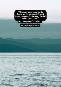 01)   ”Encourage yourself, believe in yourself, and love yourself. Never doubt who you are.”  – Stephanie Lahart