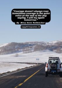 66)  ”Courage doesn’t always roar. Sometimes courage is the quiet voice at the end of the day saying, ‘I will try again tomorrow.”  -Mary Anne Radmacher