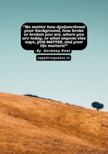 17)  ”No matter how dysfunctional your background, how broke or broken you are, where you are today, or what anyone else says, YOU MATTER, and your life matters!”  -Germany Kent