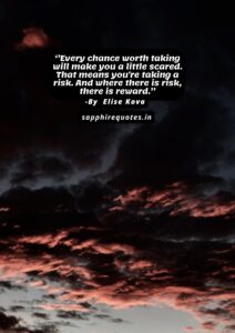 21)  ”Every chance worth taking will make you a little scared. That means you’re taking a risk. And where there is risk, there is reward.”  -Elise Kova