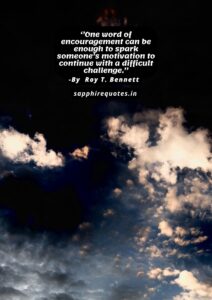 25)  ”One word of encouragement can be enough to spark someone’s motivation to continue with a difficult challenge.”  -Roy T. Bennett