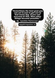36)  ”Sometimes the best goal you can set is just to get out of bed every day. If you can succeed at this, then other things become possible.”  – Cynthia Patterson