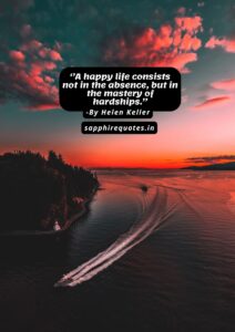 63) ”A happy life consists not in the absence, but in the mastery of hardships.”