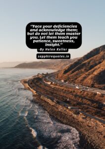 4) ”Face your deficiencies and acknowledge them; but do not let them master you. Let them teach you patience, sweetness, insight.”