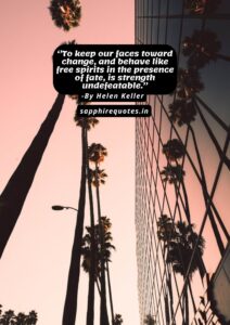 26) ”To keep our faces toward change, and behave like free spirits in the presence of fate, is strength undefeatable.”