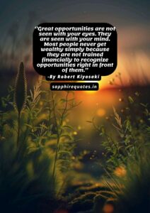 64) ”Great opportunities are not seen with your eyes. They are seen with your mind. Most people never get wealthy simply because they are not trained financially to recognize opportunities right in front of them.”