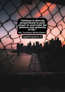 13) ”Wisdom is directly proportional to your power to overcome the failures and setbacks in life.”